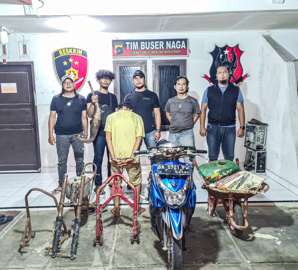 Dalam penangkapan tersebut, polisi turut mengamankan sejumlah barang bukti, antara lain satu unit sepeda motor Yamaha Mio Soul warna biru dengan nomor polisi BN 5721 PW, dua tangki motor Ninja, satu knalpot Ninja, satu rangka motor, dua pedok motor, serta satu unit arko.